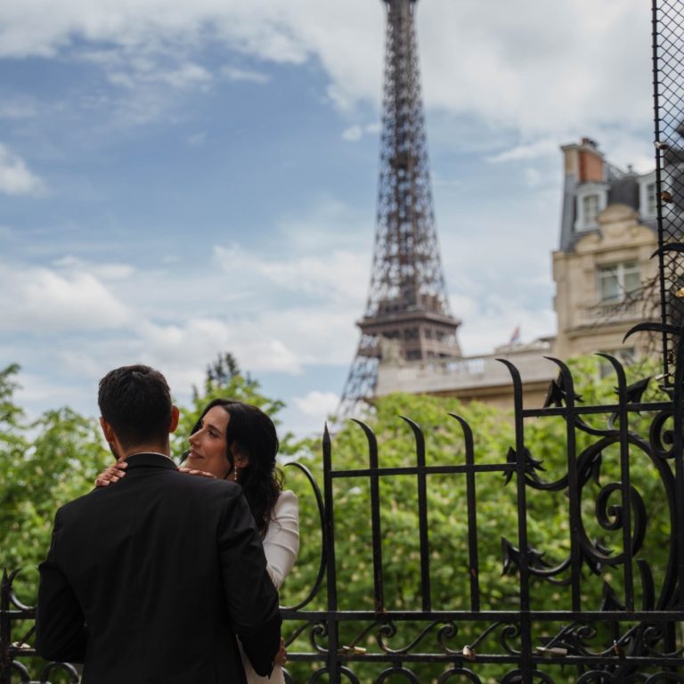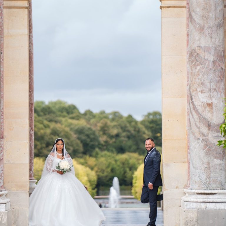 L'emblématique musée du Louvres et sa pyramide de verre pour un shooting parisien romantique.